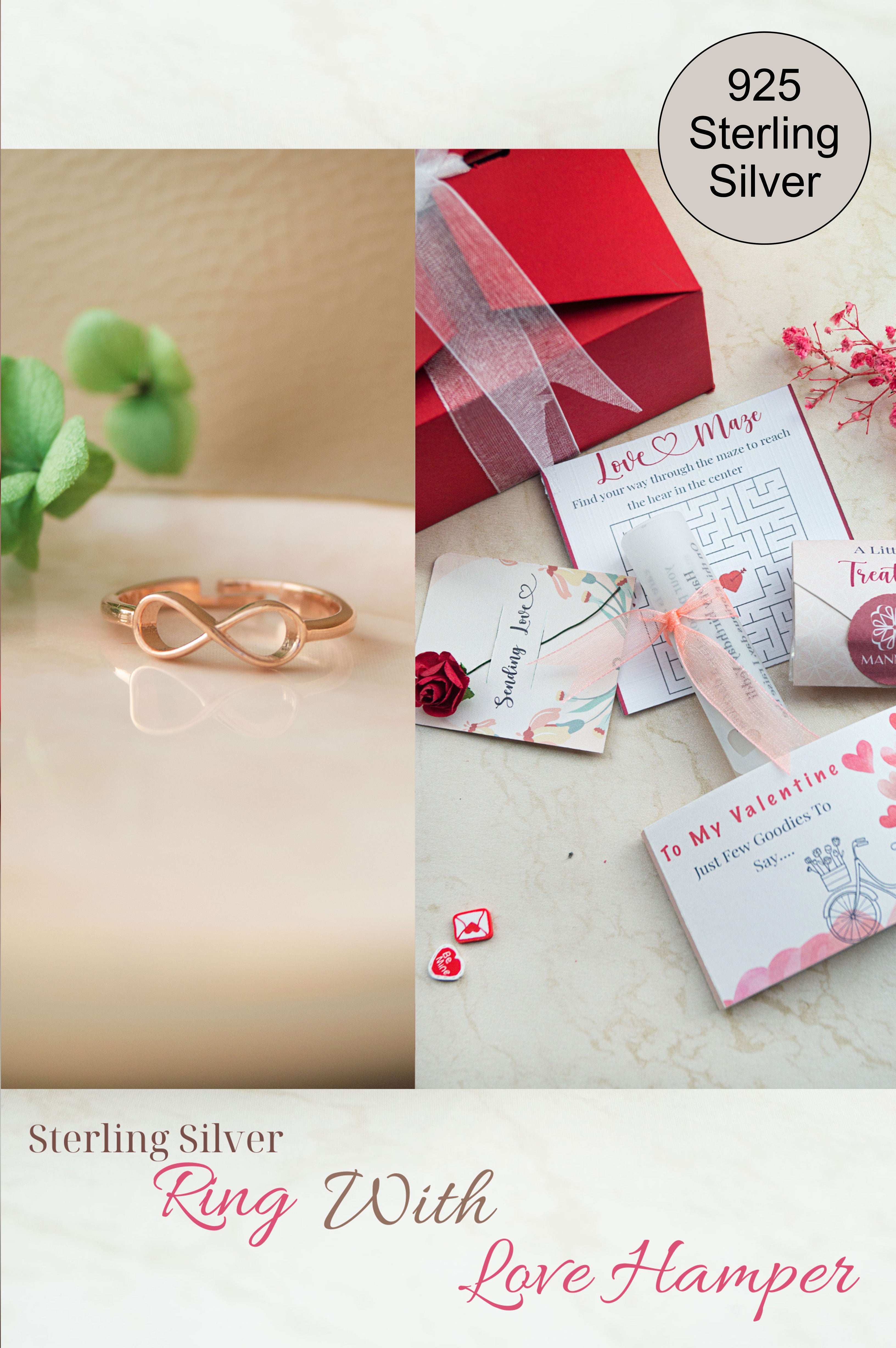 Classic Infinity Rose Gold Plated Sterling Silver Adjustable Ring Love Hamper ❤️