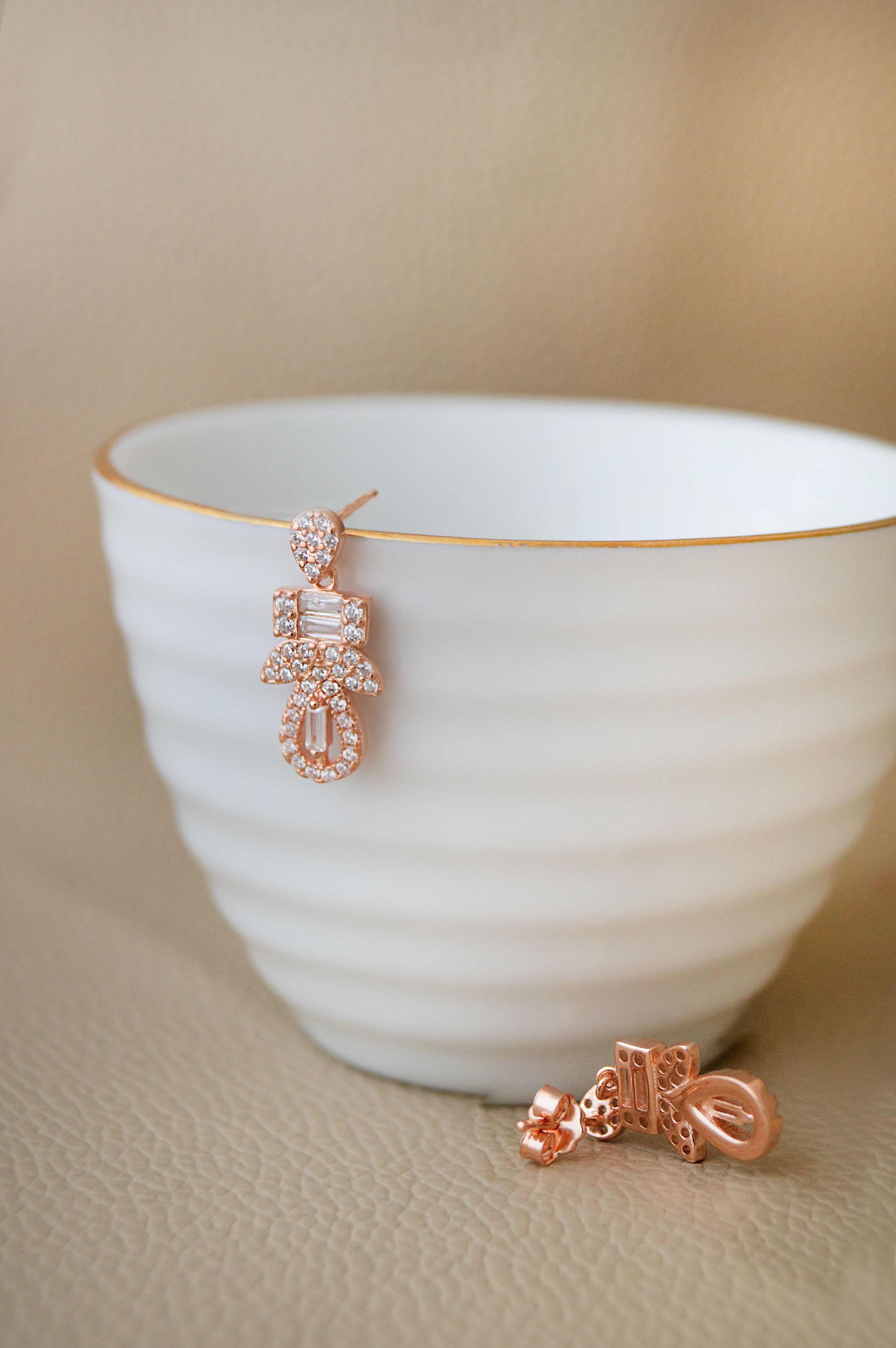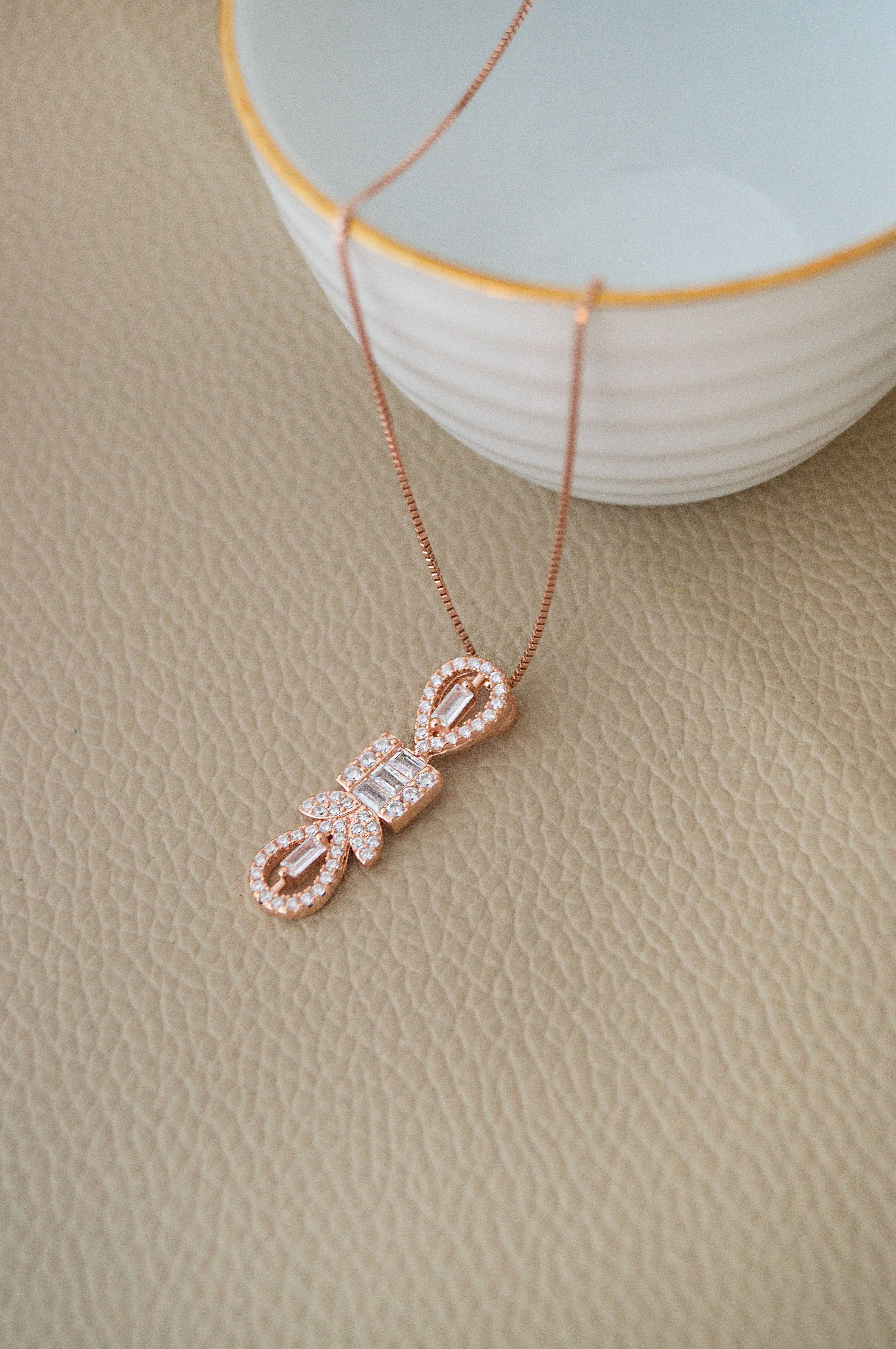 Deco Bling Rose Gold Plated Sterling Silver Pendant Set